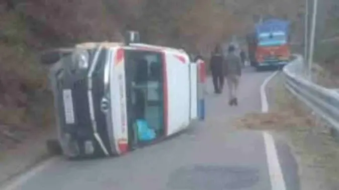 जानकारी के अनुसार एंबुलेंस का ब्रेक अचानक फेल हो गया, जिसके चलते वाहन अनियंत्रित होकर सड़क पर पलट गया। हादसे के समय एंबुलेंस में मरीज, चालक और मेडिकल स्टाफ मौजूद थे।